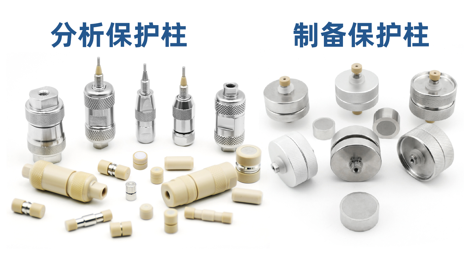 不銹鋼高效液相色譜分析保護柱、4.6# PEEK高效液相色譜保柱、UHPLC高效液相色譜保護柱、20#/ 30#高效液相色譜制備預裝柱保護柱、C18保護柱芯等。