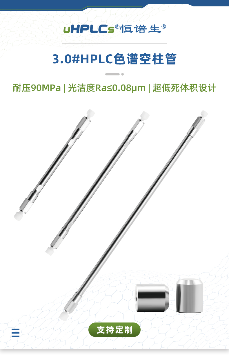 恒譜生HPLC 3.0 色譜空柱管是用于高效液相色譜(HPLC)系統(tǒng)的高性能空柱管,適用于分析和制備色譜應(yīng)用。該柱管采用高純度316L不銹鋼材料,經(jīng)過(guò)精密加工,確保內(nèi)壁光滑、死體積小、柱效高和重復(fù)性。